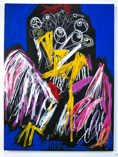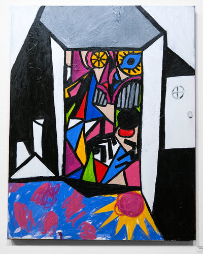 Uriel (b. 2002) is a young artist who has been living in the Bay Area since 2010. In his work, Uriel explores the ideas of humanity in isolation, the metaphysical locations the mind transports its subjects to, and the effects of corporate monarchy on nature—all wrapped in a blanket of absurdity. In painting, he aims to represent his subjects in a musical rhythm through use of composition and vibrant color. His biggest artistic inspirations are Jimi Hendrix, Miles Davis, and Hunter S. Thompson.